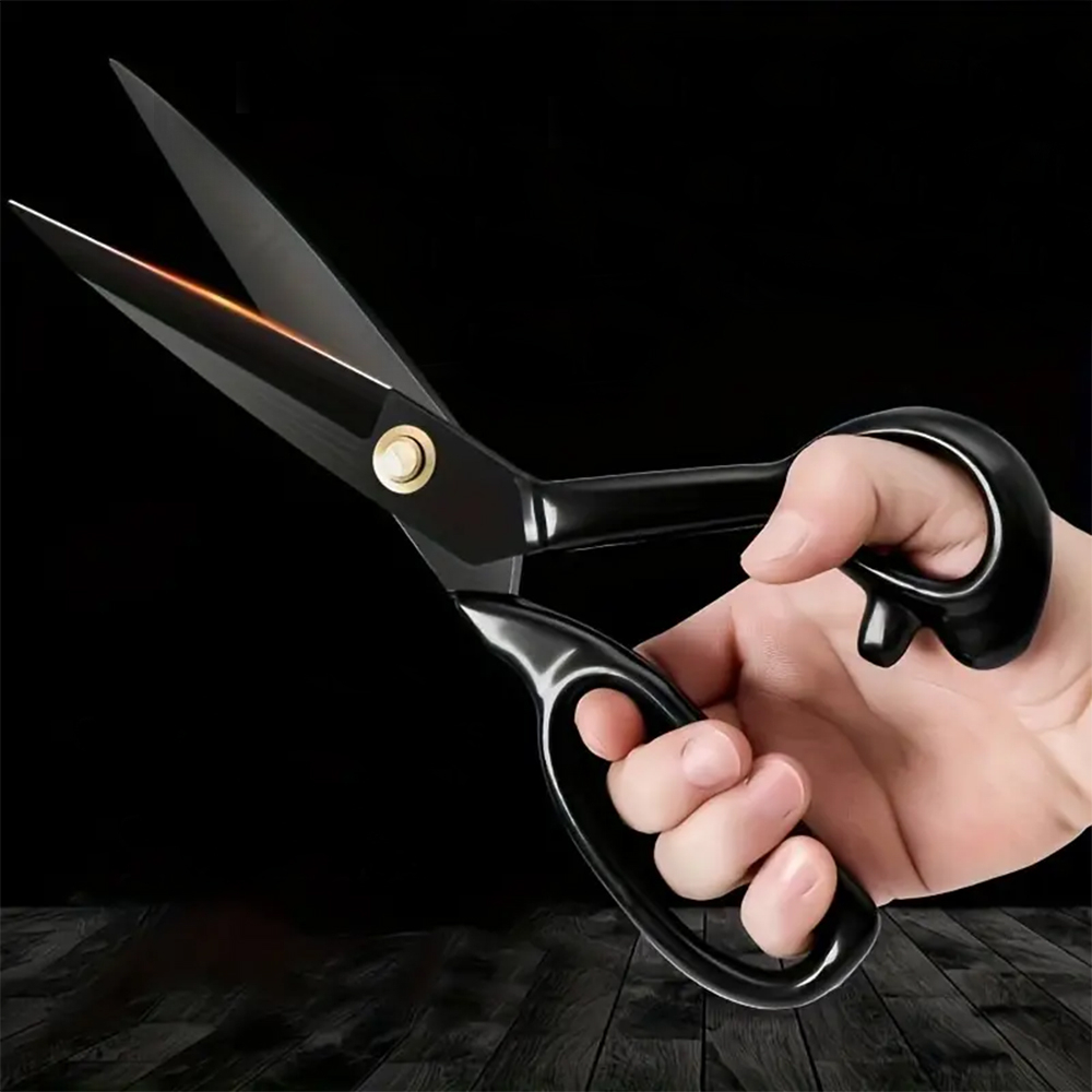 Foarfeca de croitorie de uz casnic si profesional cu lama dreapta, maner negru, otel carbon inoxidabil, manere inegale, Strong H, 25cm (10″)